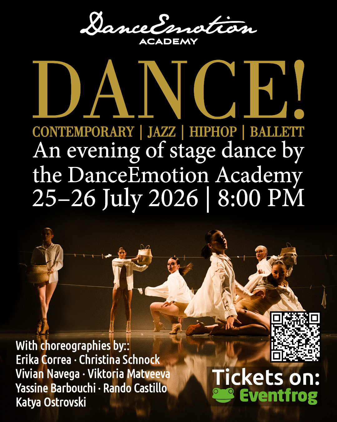 The DanceEmotion Academy – Vocational School for Stage Dance – presents the diversity of its training program in an evening of dance featuring stylistically distinct choreographies in contemporary, jazz, hiphop, and ballet.
