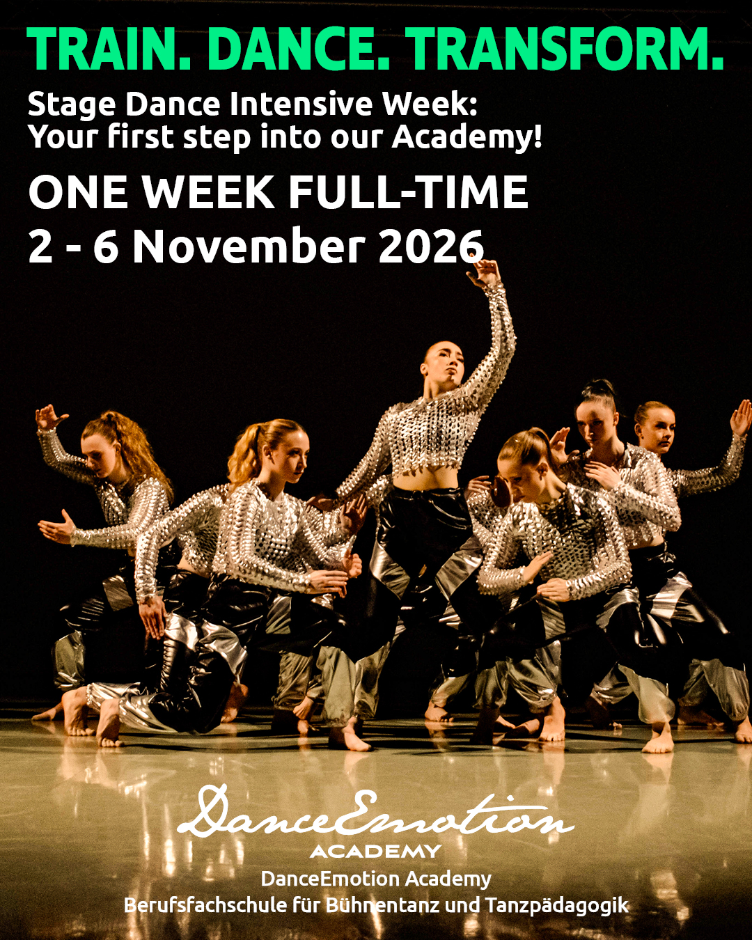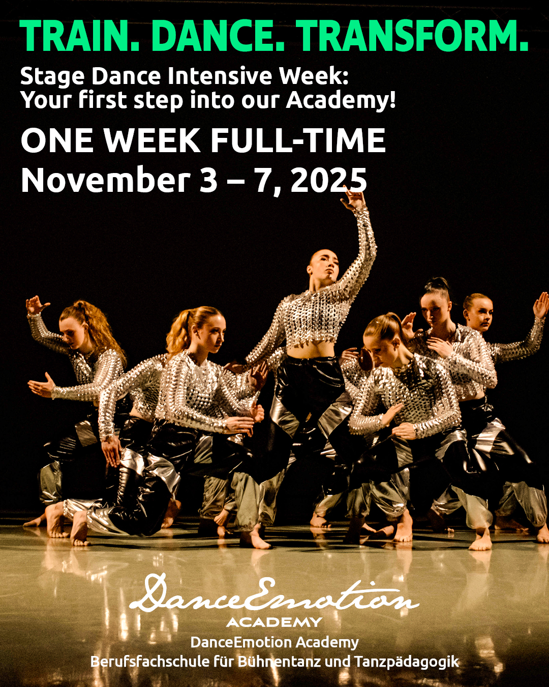 During the intensive week, you will experience the daily routine of our professional dance training. For potential applicants, this week also serves as an audition.